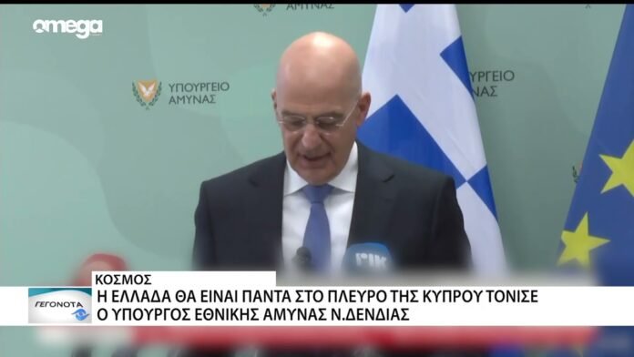 Η Ελλάδα θα βοηθήσει την Κύπρο με όποιον τρόπο μπορεί, είπε ο Ν. Δένδιας από την Λευκωσία και τόνισε ότι θα συζητήσει με τον ομόλογό του όλα τα πρακτικά μέρη της βοήθειας μετά την ενεργοποίηση του κοινού αμυντικού δόγματος Ελλάδας -Κύπρου και την αποστολή δύο ελληνικών φρεγατών και τεσσάρων F-16 Viper.