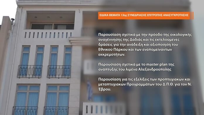 Στην Αλεξανδρούπολη θα συνεδριάσει την προσεχή Πέμπτη 19 Μαρτίου η Ειδική Επιτροπή Ανασυγκρότησης του Έβρου, παρά το γεγονός ότι ο αρχικός τόπος της συνεδρίασης ήταν η Νέα Βύσσα. Η ατζέντα της συνεδρίασης περιλαμβάνει πληθώρα θεμάτων πολλά εκ των οποίων αφορούν και την τρέχουσα επικαιρότητα, όπως οι αποζημιώσεις των πλημμυροπαθών, των κτηνοτρόφων που επλήγησαν από ζωονόσους και άλλα σημαντικά θέματα.