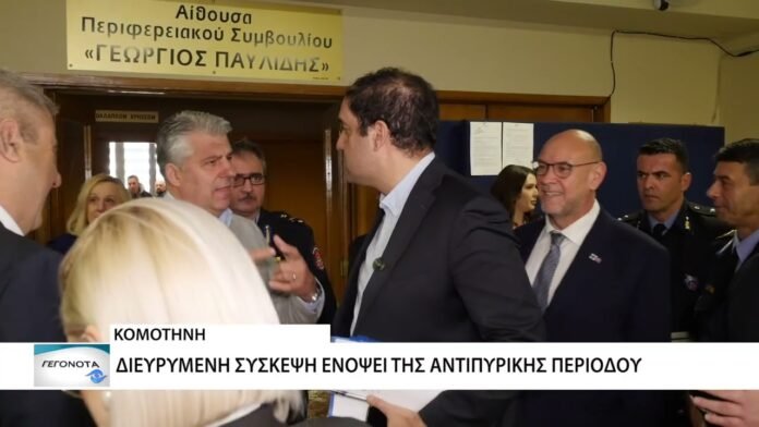 Διευρυμένη σύσκεψη του Περιφερειακού Συντονιστικού Οργάνου Πολιτικής Προστασίας για την «Προετοιμασία ενόψει Αντιπυρικής Περιόδου 2026 για την Περιφέρεια Ανατολικής Μακεδονίας & Θράκης», πραγματοποιήθηκε στην Κομοτηνή. Η σύσκεψη έγινε , υπό τον Υπουργό Κλιματικής Κρίσης και Πολιτικής Προστασίας κ. Γιάννη Κεφαλογιάννη και τον Περιφερειάρχη κ. Χριστόδουλο Τοψίδη.