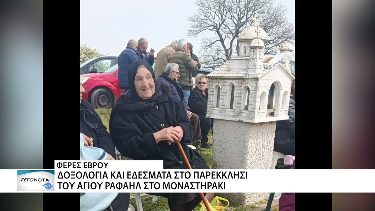 Στο Μοναστηράκι Φερών, η Τρίτη του Πάσχα είναι κάτι σαν τοπική γιορτή. Μαζεύτηκε και φέτος ο κόσμος στο εκκλησάκι του Αγίου Ραφαήλ, έγινε η δοξολογία και μετά, όπως ορίζει το έθιμο, μοιράστηκε σε όλους το παραδοσιακό κουρμπάνι. Μια όμορφη παράδοση που ξεκίνησε από ένα τάμα και κρατάει γερά μέχρι σήμερα.