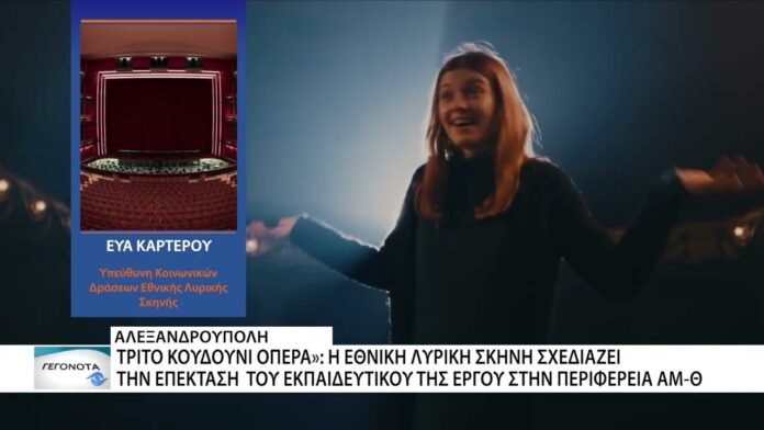 Η Εθνική Λυρική Σκηνή προσανατολίζεται στην ένταξη της Αλεξανδρούπολης στο καινοτόμο πρόγραμμα «Τρίτο Κουδούνι Όπερα», στοχεύοντας στη μύηση μαθητών και δασκάλων στον κόσμο του μουσικού θεάτρου. Η υλοποίηση της δράσης εξαρτάται από τη διαθεσιμότητα κατάλληλων υποδομών, με την τοπική αυτοδιοίκηση να καλείται να διασφαλίσει τους χώρους που θα φιλοξενήσουν την τελική παράσταση των παιδιών.
