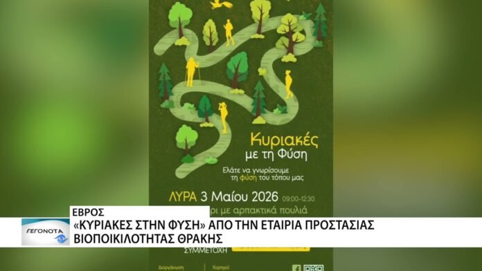 Μια μοναδική ευκαιρία για απόδραση από την καθημερινότητα προσφέρει η Εταιρεία Προστασίας Βιοποικιλότητας Θράκης, εγκαινιάζοντας στις 3 Μαΐου στη Λύρα Έβρου τον νέο κύκλο δωρεάν περιβαλλοντικών εξορμήσεων. Οι συμμετέχοντες θα έχουν τη δυνατότητα να γνωρίσουν από κοντά τον κόσμο των αρπακτικών πουλιών, αρκεί να δηλώσουν συμμετοχή έως τις 30 Απριλίου για τις περιορισμένες διαθέσιμες θέσεις.