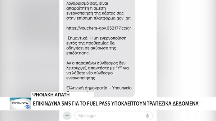 Συναγερμός έχει σημάνει για νέες ψευδείς ειδοποιήσεις που υπόσχονται δήθεν χρήματα για το Fuel Pass, με σκοπό την αρπαγή προσωπικών δεδομένων. Οι δράστες χρησιμοποιούν διεθνείς αριθμούς και πλαστούς συνδέσμους, προσποιούμενοι τις κρατικές υπηρεσίες για να εξαπατήσουν τους πολίτες.