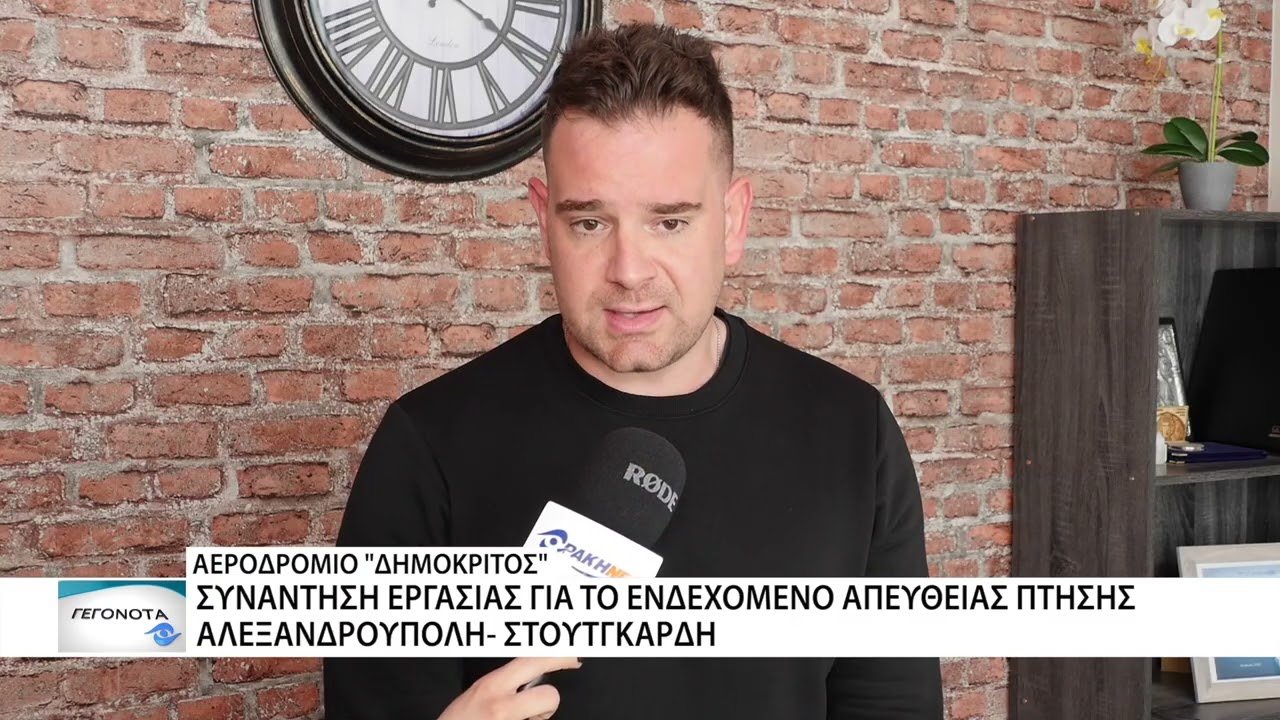 Στο προσκήνιο βρίσκεται η προοπτική απευθείας αεροπορικής σύνδεσης Αλεξανδρούπολης–Στουτγκάρδης, μετά από συνάντηση εργασίας στο αεροδρόμιο “Δημόκριτος”, με τη συμμετοχή τοπικών φορέων και εκπροσώπων της αγοράς, με στόχο την ενίσχυση της ομογένειας και της τοπικής οικονομίας. Υπό εξέλιξη βρίσκεται και η διαμόρφωση σχεδίου για την τεκμηρίωση της ζητήσης, ώστε να υποβληθεί στις υποψήφιες αεροπορικές εταιρίες.